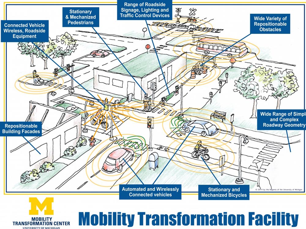 Su construcción demandó 6.5 millones de dólares y está ubicado en Ann Arbor, la sede de la universidad, a 70 kilómetros de Detroit. La “ciudad” posee la recreación perfecta de calles urbanas y suburbanas, cruces, semáforos, rotondas y también caminos de ripios, puentes, túneles, barreras y puntos con la visión obstruida.