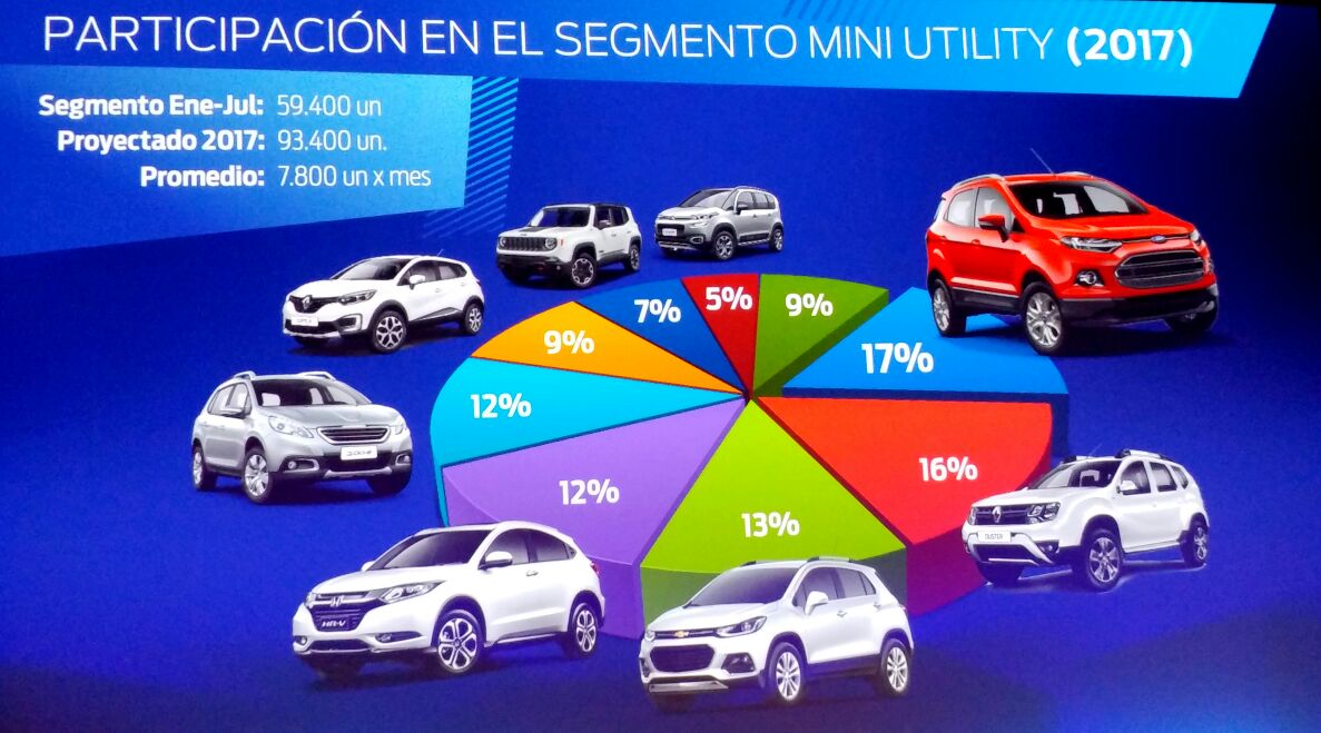 A pesar de conocerse que la anterior generación dejaba de fabricarse y en el camino de transición a la nueva, la Ecosport ha mantenido el liderazgo con los números conocidos hasta julio. Está primera en el ranking de su segmento, seguida muy de cerca por la Renualt Duster y más atrás la Chevrolet Tracker, Honda HRV, Peugeot 2008, Renaut Captur y Jeep Renegade, entre otros.