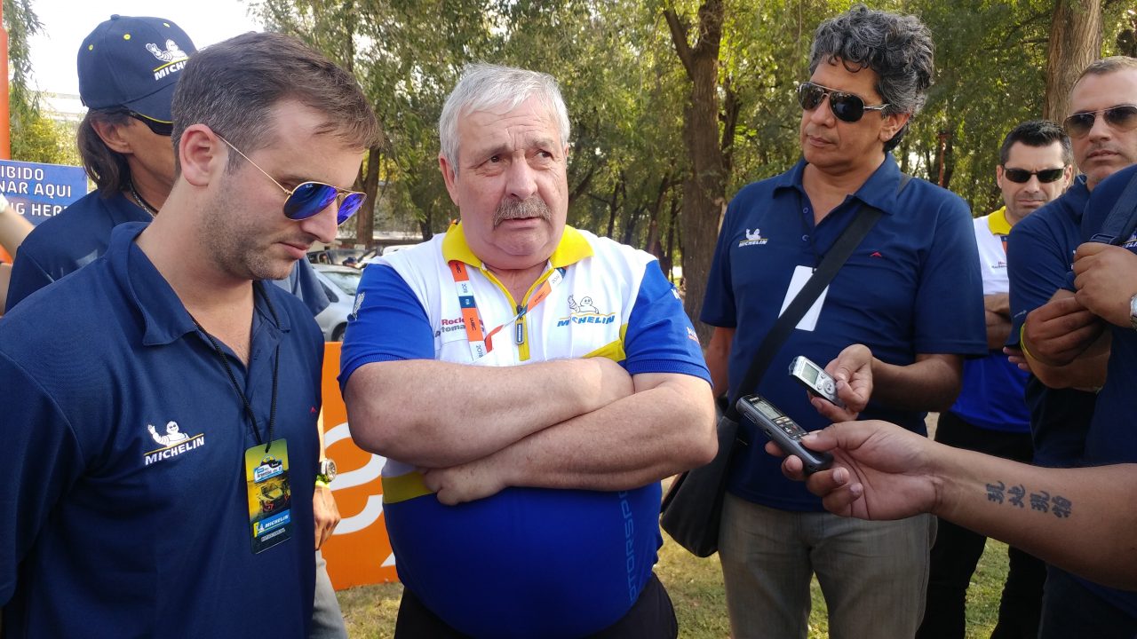 El mismo viernes, una vez finalizado el súper prime, visitamos el parque de servicios donde cada marca pone a punto los vehículos y se encuentra el cuartel central de Michelin, con Jacques Morelli, Gerente del programa WRC de Michelin Motorsports, a la cabeza, quien explicó que ellos establecen un experto (que mantiene confidencialidad de información) para cada uno de los cuatro equipos principales de la competencia.