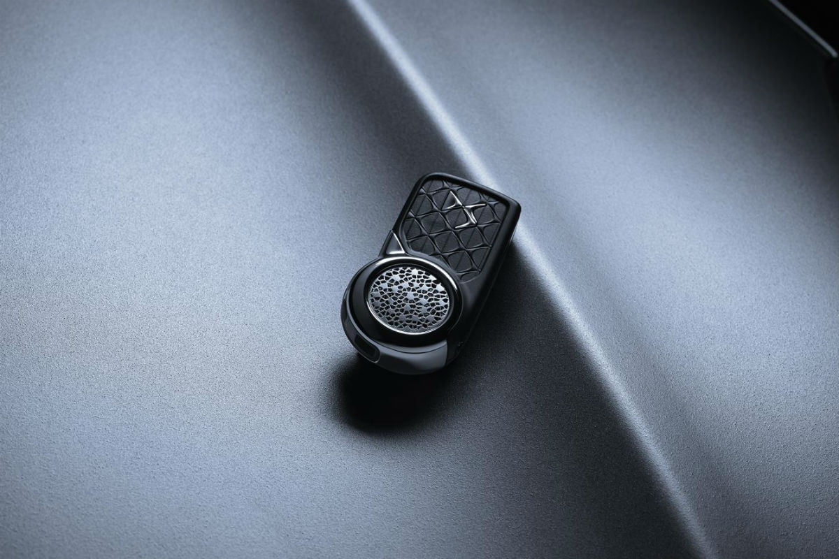 La segunda técnica aplicada es la impresión 3D: con la cual se crearon piezas de titanio que otorgan un toque refinado a varios elementos del habitáculo o la llave de contacto. En los paneles de las puertas, llaman la atención objetos cuyos reflejos metálicos contrastan con la atmósfera del habitáculo.