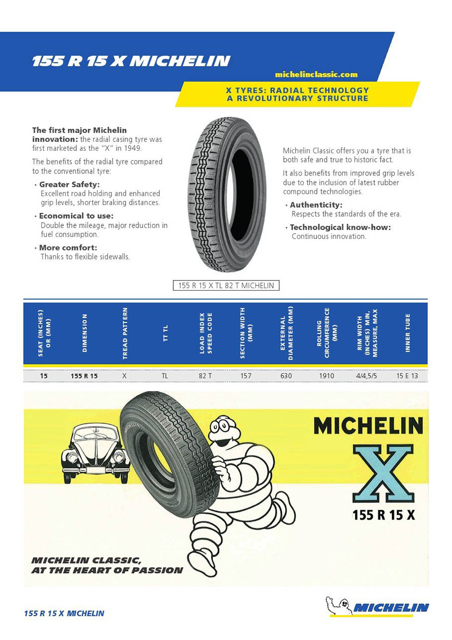 Volviendo a los “Escarabajos”, Spinazzola explicaba que este VW tiene varias medidas, pero la más conocida es la 560/15. “Esta medida es del neumático convencional que comenzó a apacer en los Beetles a partir de los 50, Michelin ofrece el 155R15 en la línea X, que es el equivalente en neumático radial al 560/15”, completó el experto.