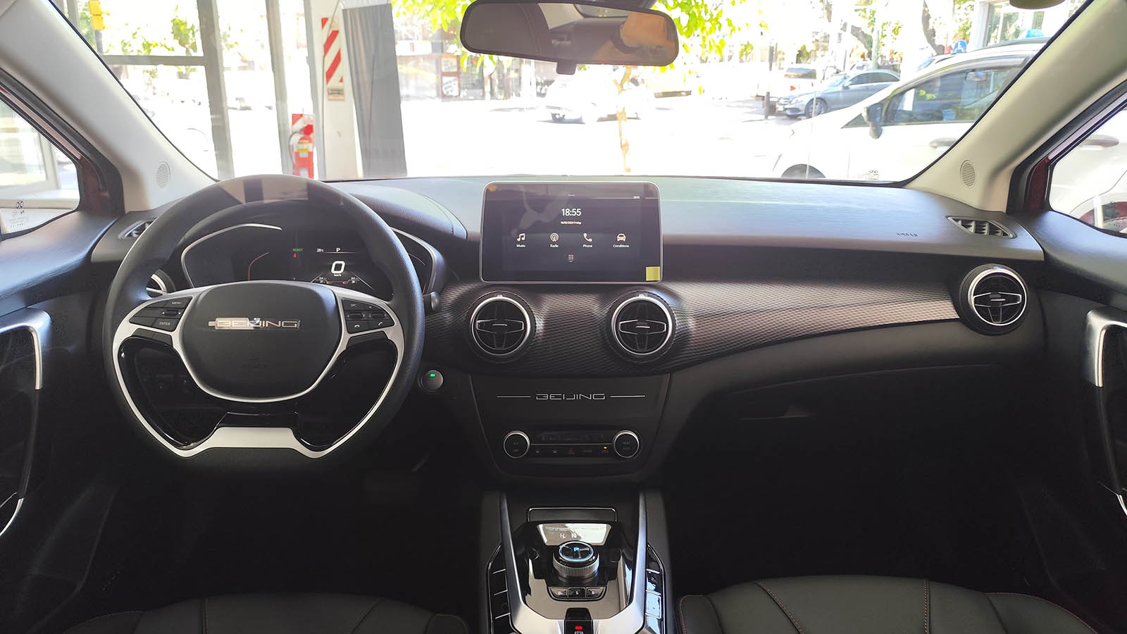 Puertas adentro, el nuevo Baic EU5 combina espacio, confort y tecnología. Ofrece una pantalla multimedia en posición elevada acompañada por salidas de aire circulares. Equipa llave inteligente y encendido con botón.