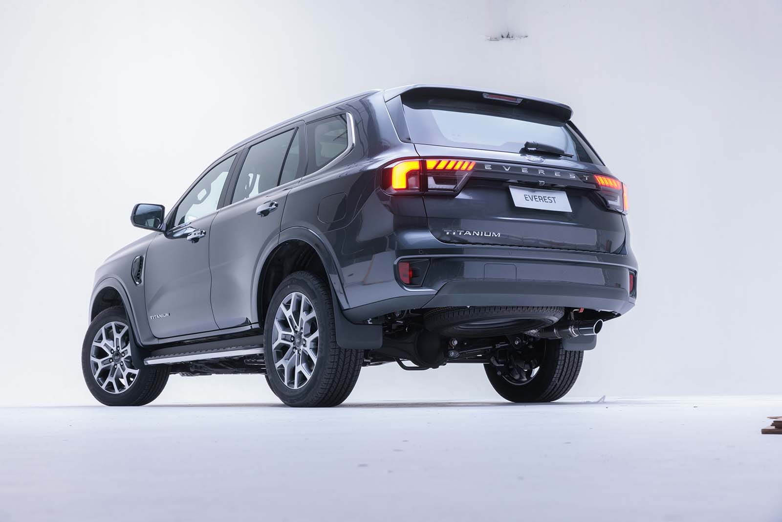 A primera vista, el nuevo Everest impacta por su diseño robusto y sofisticado. Se destacan detalles como la imponente parrilla cromada, los ganchos de rescate, los faros delanteros full-LED con formato tipo “C”, faros traseros de LED que remiten a otros SUVs de Ford, apliques cromados en los marcos de los rompenieblas, las carcasas de los espejos retrovisores, las manijas de puertas y la línea de cintura, que se combinan con detalles satinados en las barras portaequipaje y los estribos laterales.