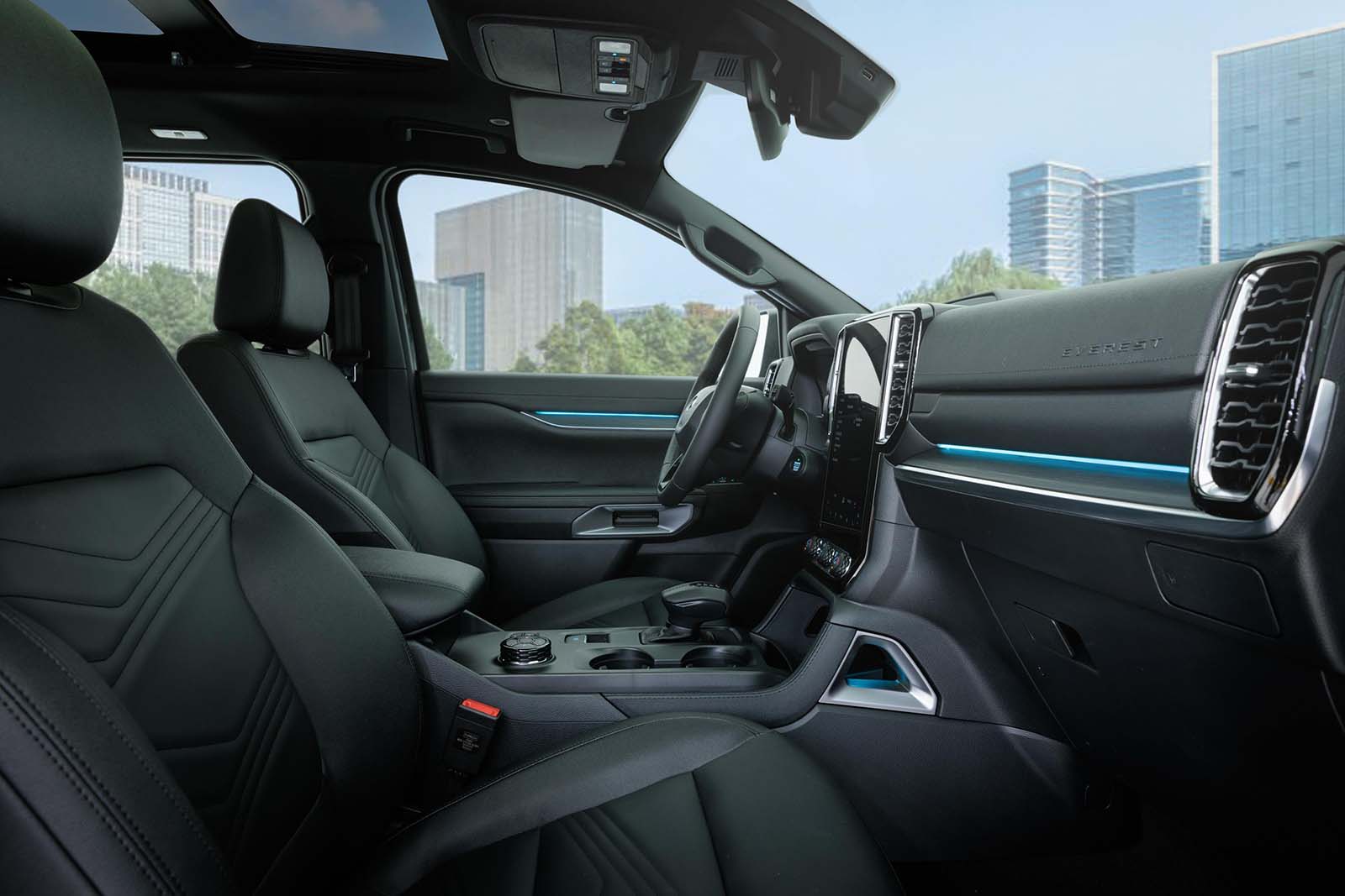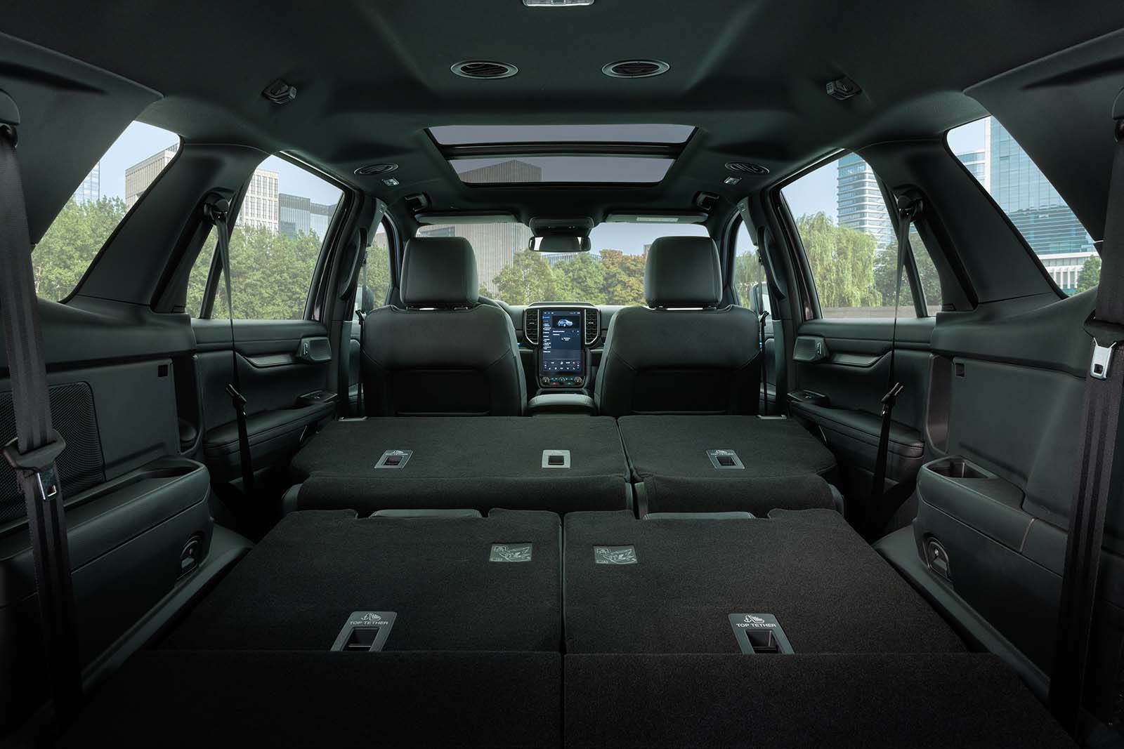 El nuevo Everest cuenta con capacidad para siete pasajeros y un diseño inteligente en su interior, con recursos como asientos plegables eléctricamente bajo el piso del baúl, lo que la hace ideal para el uso diario, ofreciendo confort y espacio para toda la familia.