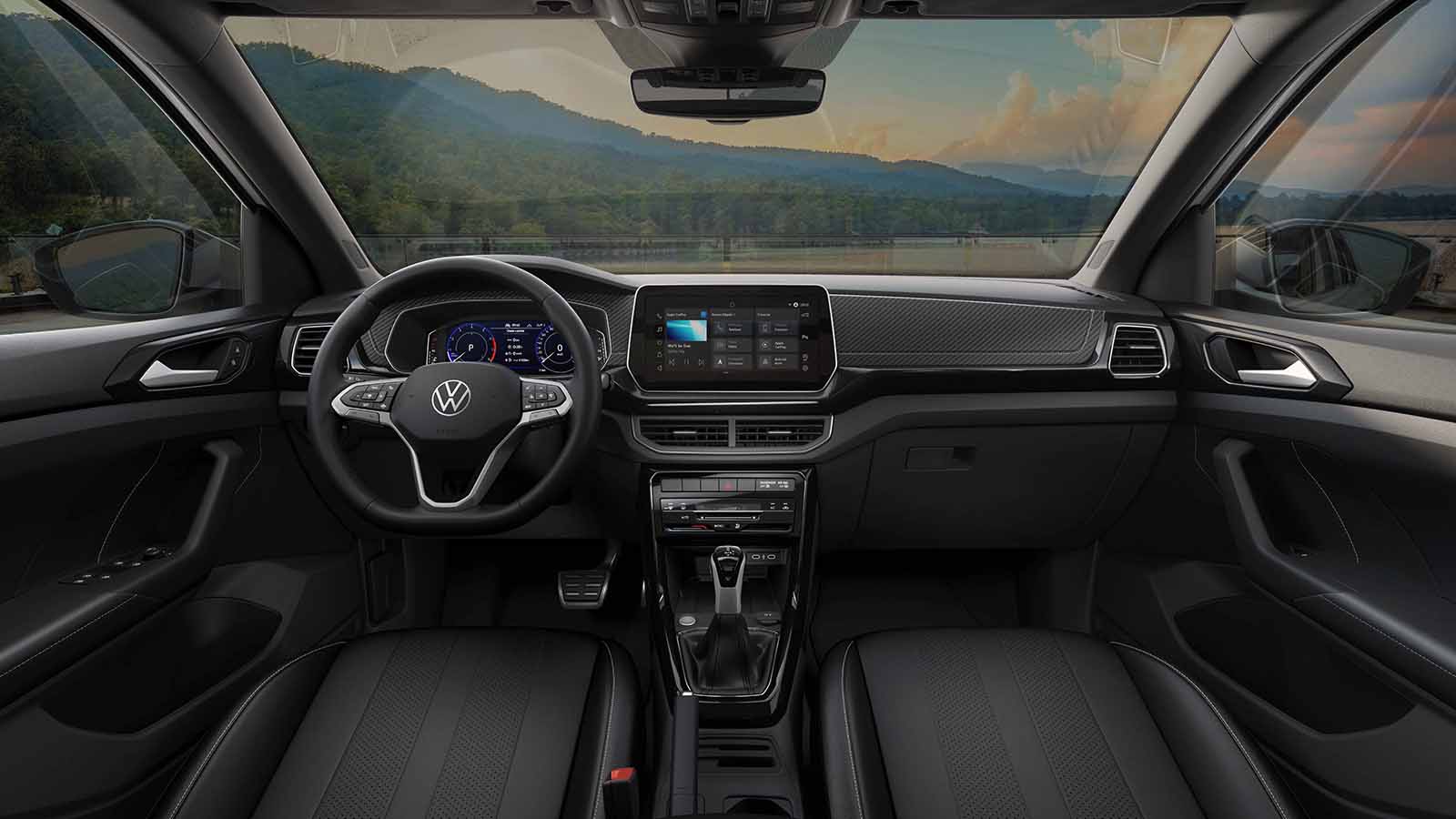 En confort, el T-Cross ofrece climatizador automático en las versiones superiores, volante multifunción revestido en cuero, sensores de estacionamiento delanteros y traseros, sistema multimedia con pantalla de 10 pulgadas y compatibilidad con Android Auto y Apple CarPlay, y el panel digital VW Digital Cockpit.