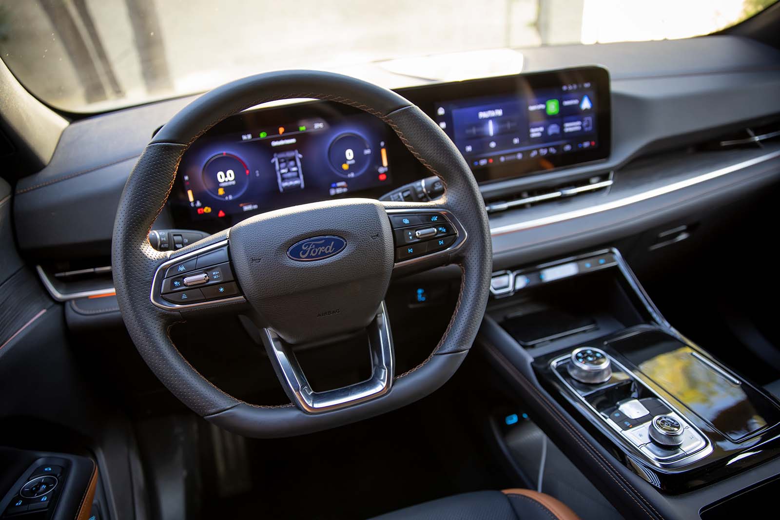 En la parte trasera, se destacan el aplique EcoBoost en el portón, que es de apertura eléctrica y sin manos, y los faros traseros con tecnología Full LED. La versión Titanium agrega en esta renovación detalles cromados en la parrilla, espejos exteriores rebatibles eléctricamente con luz de charco y manijas de puertas cromadas.