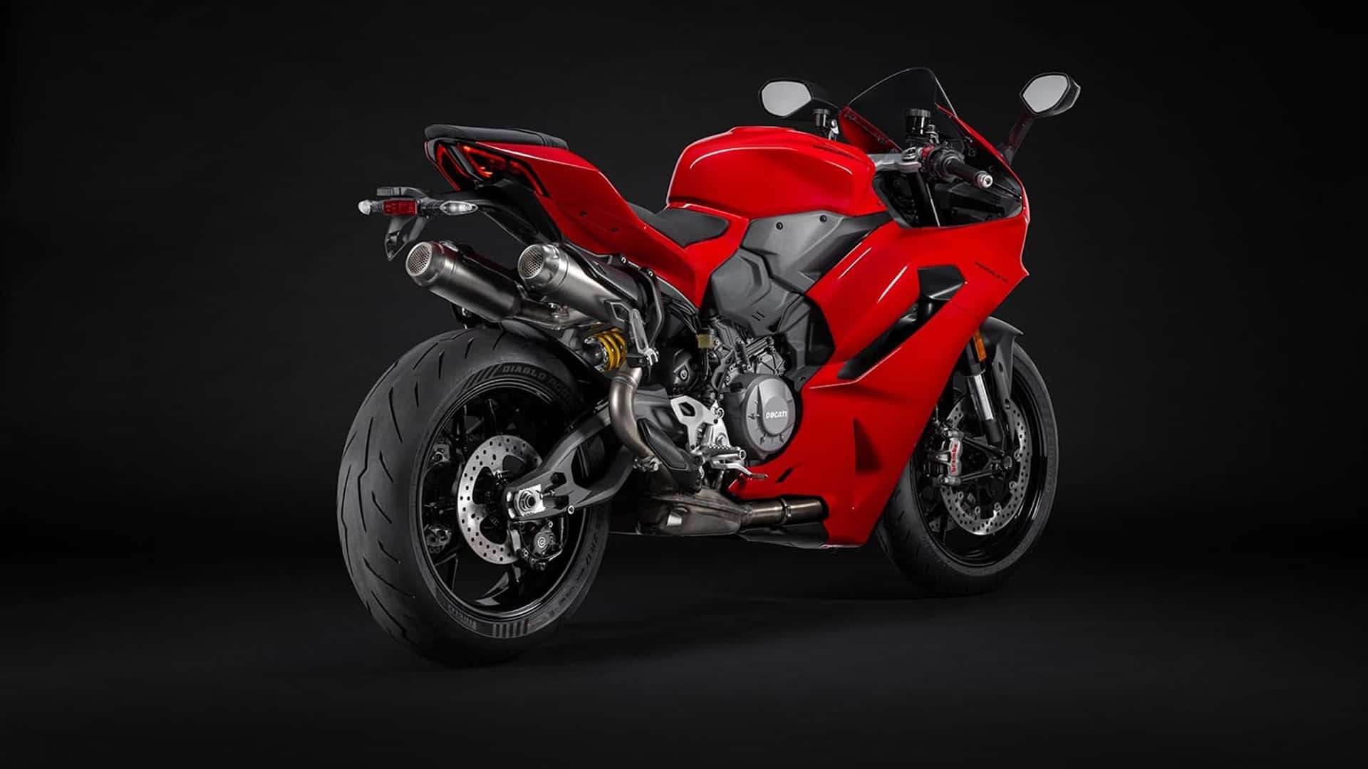 La parte trasera recibió el mismo tratamiento estilístico y se funde a la perfección con el depósito, creando un efecto monolítico claramente inspirado en la 916. El conjunto óptico trasero full-LED está dividido en dos partes, siguiendo la tradición de las motos deportivas. El escape, que termina con dos silenciadores bajo el asiento, remite a la tradición de competición de toda Panigale, subrayando el alma deportiva de la moto.